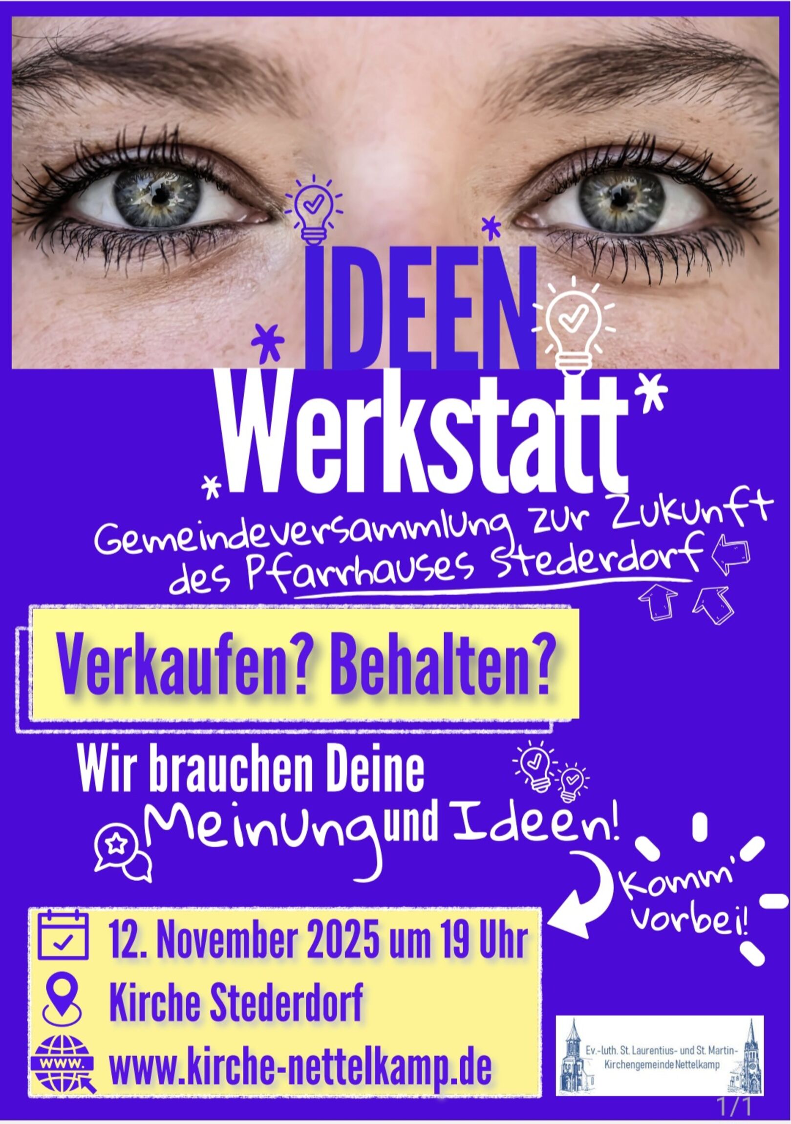 Zögert nicht und kommt gern zur Ideenwerkstatt - das Thema betrifft alle, die sich für die Zukunft Stederdorfs interessieren und einsetzen möchten (und nicht nur die Kirchgänger)!
